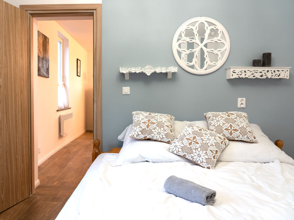 Do dyspozycji: 1 łóżko podwójne, 2 łózka pojedyncze, sofa 2 osobowa i 1 dostawka (łóżeczko)